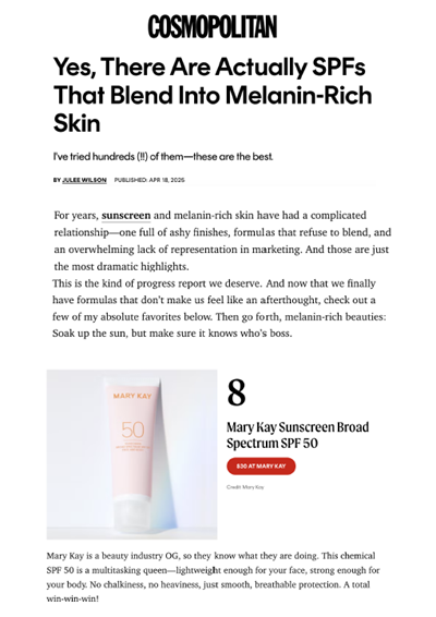 Mary Kay® Sunscreen Broad Spectrum SPF 50* como se mencionó Cosmopolitan